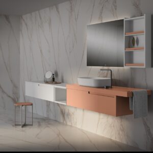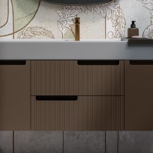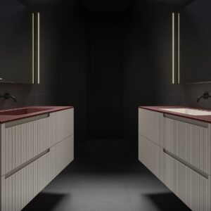 Collezione modulare disegnata focalizzandosi sulla ricerca del gioco delle linee e dei rilievi, un binomio che le conferisce grande originalità. La sua maniglia sfalsata e curva offre il contrappunto perfetto alle sue due strutture a doghe diritte e allineate. Con grande modularità, le possibili combinazioni con Synergy si adattano ad ogni esigenza.