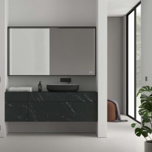 Il concept progettuale del restyling della collezione parte dalla profonda rivisitazione della sua modularità, che viene ampliata, per donare maggiore capacità contenitiva e configurabilità alle esigenze dell’abitare contemporaneo. Il programma si completa ora di nuovi spunti funzionali e decorativi, come la maniglia Teorema e il Sistema Wall, boiserie modulare a parete dalla ridotta profondità. Il telaio in alluminio, elemento strutturale ed estetico si tinge di effetti metallici (Titanio, Oro e Rame), alleggerendo visivamente il concetto di configurazione con base a terra o diventando segno grafico complementare imprescindibile al lavabo iconico Dogma.