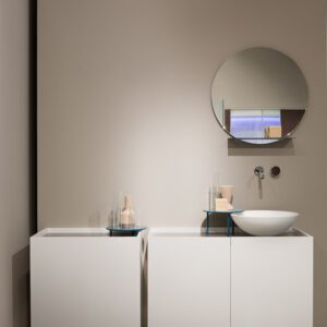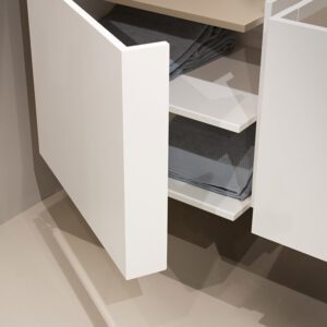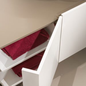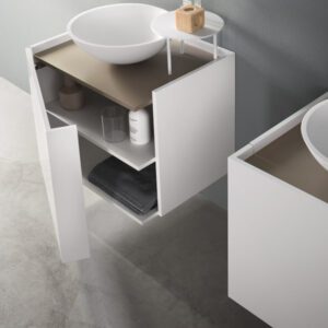 Tender è un mobile lavabo di dimensioni contenute, realizzato in 2 misure cm 60 e 90 e caratterizzato dal particolare risvolto dell’anta e dalla sua sporgenza rispetto al filo top che ne consente l’apertura.