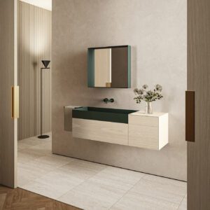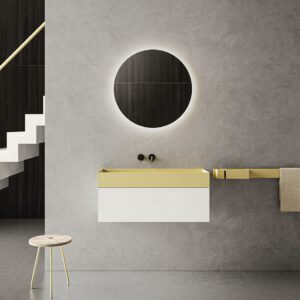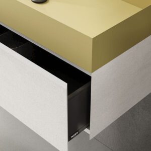 È racchiuso nel nome Less il senso estetico di questo arredo, sintesi di forma e funzione. La ridotta profondità dell’arredo ne permette la collocazione in spazi contenuti, non rinunciando ad un contenitore capiente e un grande lavabo, caratterizzato dall’esilità del metallo con cui è realizzato.