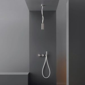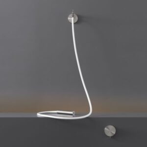 Rubinetteria in acciaio inossidabile AISI 316L, disponibile nelle versioni progressiva e bicomando. Il design evoca volutamente i due elementi dell’ASTA free-standing e del MICROFONO, collegato all’impianto per mezzo di un tubo colorato che, anziché energia, trasporta acqua. Il tubo in gomma siliconica è disponibile in colore bianco, verde acqua, blu cobalto e grigio antracite. La bocca di erogazione può essere estratta dal supporto e orientata a proprio piacimento diventando un elemento estremamente funzionale.