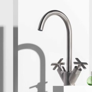 Dal disegno pulito e minimale, Gill trova il giusto equilibrio compositivo nell’incastro tra diversi elementi cilindrici: corpo, bocca e leva, sono definiti da differenti sezioni circolari, che intraprendono curve delicate e originali.
