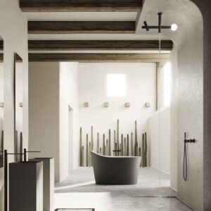 Un elemento conosciuto da tutti, un nome che rimanda immediatamente a tempi lontani, alla memoria del rito del lavarsi in un’epoca nella quale l’acqua corrente era davvero un lusso. Un oggetto che diventava “luogo”, perché proprio il mastello, collocato al centro della stanza diventava il fulcro della scena, attorno al quale giocare, raccontare storie, condividere emozioni. antoniolupi e Mario Ferrarini ne reinterpretano il significato con Mastello, la vasca-tinozza in Flumood o Colormood dall’immagine elegante, fatta di linee fluide, forme morbide e candide superfici che si sviluppano senza soluzione di continuità. Una forma pura, organica e accogliente, nella quale anche i dettagli contribuisco al salto temporale.