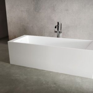 Linearità e geometria, spazio e comodità La forma squadrata della vasca freestanding Square conduce la sensazione di benessere alla sua dimensione più pura. Disponibile in Cristalplant in finitura Bianco opaco e solo esternamente nei colori laccati opachi come da campionario Ideagroup e RAL. “Troppo pieno” integrato nella vasca, finitura coperchio piletta Bianco opaco.