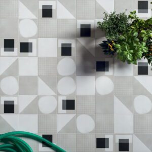 Collezione dal forte impatto visivo, Futura è l’epilogo di molteplici incipit. L’idea si plasma partendo dai principali protagonisti delle correnti artistiche, dell’architettura della prima metà del XX secolo e da dinamiche e situazioni fortemente contemporanee: dalla Bauhaus, al genio di Pierre Chareau - con la sua spettacolare Maison de Verre - fino ad arrivare a beat generation e cyber style. Futura si ispira alle tipiche cementine fatte a mano. Per raggiungere tale aspetto abbiamo volutamente realizzato un materiale che tramite un processo semi industriale offra la percezione tipica di un prodotto artigianale. Questo valore aggiunto è evidenziato da tipiche variazioni di planarità e ortogonalità, e dalla presenza di piccole irregolarità presenti sulla superficie smaltata. Al prodotto viene conferito un aspetto unico e naturale grazie alla leggera variazione di tono tra fondi e decori. Un formato 15x15, un colore principale - il grigio tipico del cemento - declinato in 4 varianti - bianco, nero, rosa e azzurro - che a loro volta generano 4 tipologie decorative, creando uno spettro molto ampio di alternative. Un compendio duttile, un alfabeto di forme basiche che si prestano a svariate interpretazioni formali e stilistiche. Molteplici le combinazioni di posa e le soluzioni che consentono un’autentica personalizzazione del progetto lasciando spazio ad un’equilibrata coesistenza di atmosfere differenti. Futura è ora.