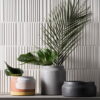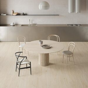 Un alternarsi di toni, superfici e consistenze creano un’amalgama uniforme e coesa. 3 nuance di bianchi, grigi e neri, colori acromatici che accostati creano sfumature inattese con una propria dimensione, un proprio equilibrio e un proprio linguaggio. Due superfici differenti per esplorare ed interpretare una visione comune: il tempo che lascia segni e impronte sulla propria pelle, un passato tutto da riscoprire.