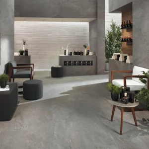 La pietra, elegante e decisa in natura, viene reinterpretata in una collezione adatta a chi vuole sentirsi in totale armonia con l’ambiente. Ispirata alla pietra Beola della Val d’Ossola, la superficie di Klif ha tra i suoi punti di forza l’estremo realismo, riproducendo fedelmente le venature e le sfumature tipiche della materia prima. Asperità superficiali e cristalli di quarzo creano ricercati effetti di riflessione luminosa della pietra naturale. Negli spazi più scenografici dell’architettura contemporanea, la superficie materica del gres effetto pietra crea uno sfondo carico di atmosfera. I pavimenti e i rivestimenti effetto pietra arredano con armonia i diversi ambienti, con una naturale predisposizione per gli spazi dedicati all’accoglienza e all’ospitalità.