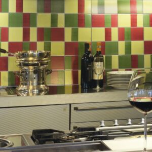 I possibili criteri di posa, essendo la piastrella di formato rettangolare 10×20, sono diversi, tutti memoria di un gusto sempre contemporaneo. Il motivo della decorazione di Cromia 1369 e tale, che l’utilizzo può essere fatto nei progetti più disparati, anche fuori da bagno e cucina, oltre pavimento e rivestimento, su qualsiasi superficie si voglia creare una preziosa finitura d’arredo con la vivacità, il calore dei colori della piastrella di ceramica vietrese.