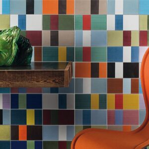 Il formato 10×20, su cui è prodotta, ha 50 pezzi per metro quadro, per cui, a seconda della serie, ci sono di ogni variante colore decine di pezzi. La semplicità del progetto, pensato con una riga in contrasto cromatico con le fasce laterali, genera atmosfere di grande seduzione nei contesti dove viene impiegato.