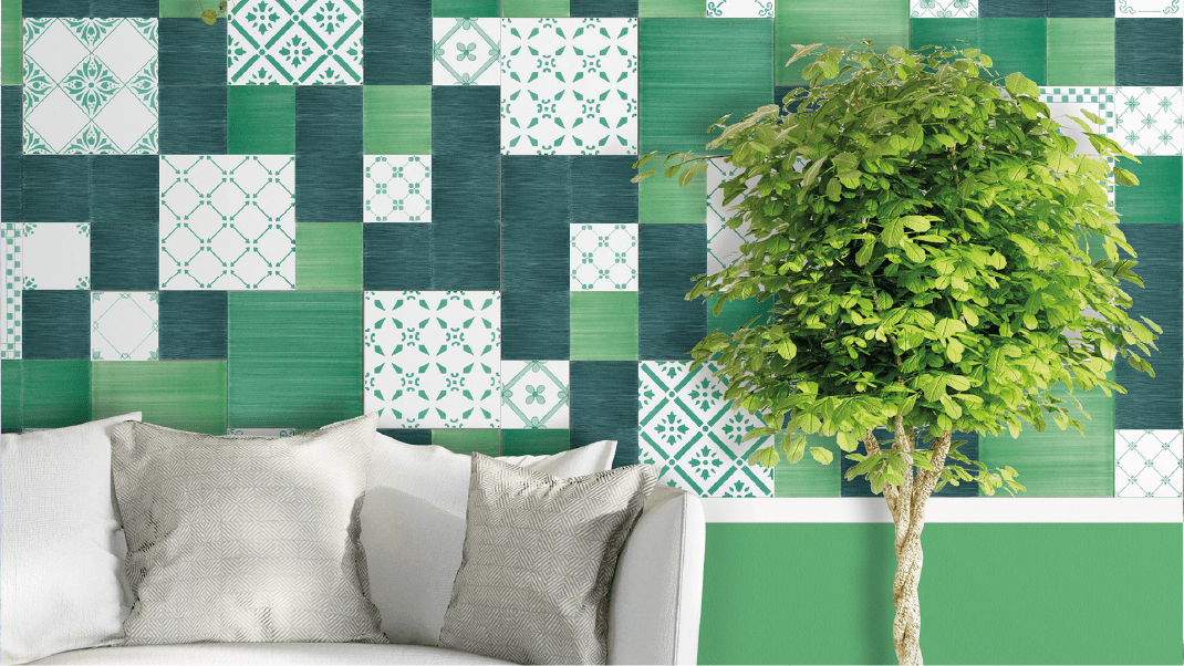 Il colore come movimento visivo e suggestione materica, gioca con nitidezze cromatiche tra piastrelle patchwork di fiori, greche e fregi e variazioni cromatiche sul tema.
