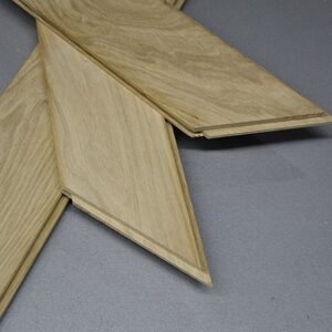 Produciamo la piattaforma Herringbone con rovere massiccio al 100% a 90° e Punto Ungheria a 35°, 45° e 55° (con la possibilità di profilatura su tutti e quattro i lati della testata). Include giunto di dilatazione sull’altro lato.